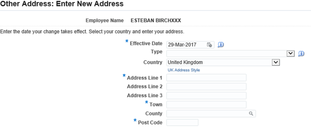 - the ‘Other Address: Enter New Address’ screen will be displayed