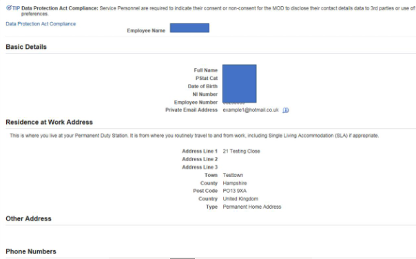 Please Note: When changing a Residence at Work Address you should inform HM Revenue & Customs if this is your main address where your mail is sent. Contact your Unit HR Admin for the HMRC address.
