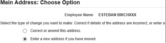 The ‘Main Address: Choose Option’ screen will be displayed.