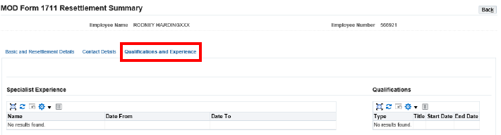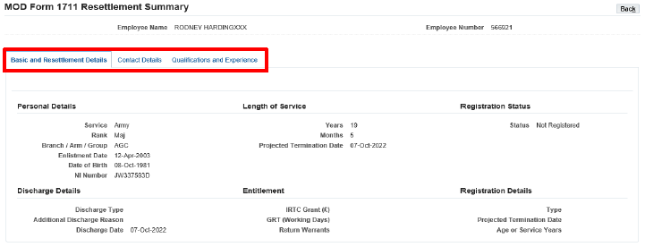 navigate to Self Service - Employee, Armed Forces_Resettlement_F1711 Summary
