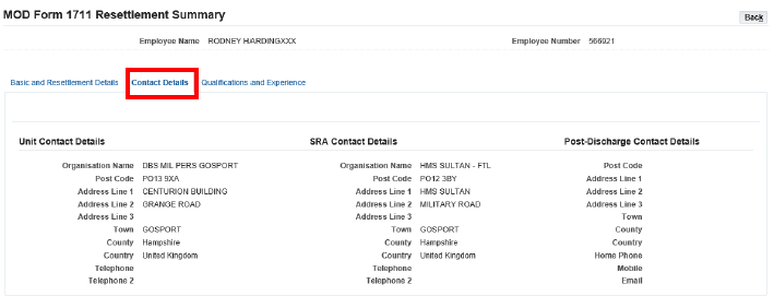 check SRA Contact Details - This should be the SRA address administering the Service Leaver. Amendment of any of these addresses should be directed through the SL/ESL Unit HR Administrator