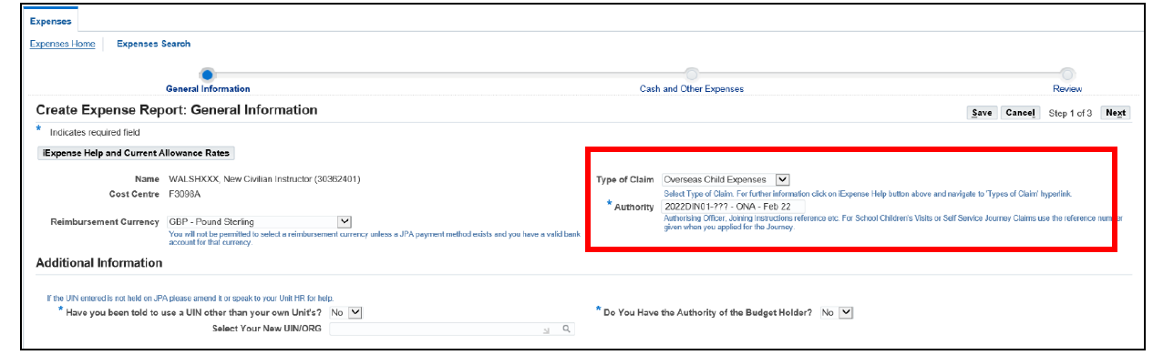 do NOT change ‘Have you been authorised to use a UIN other than your own Unit’s?’, ‘Do you have the authority of the Budget Holder?’, or ‘Select Your New UIN/ORG’ within the ‘Additional Information’ area. Funding allocation is automatically attributed to the correct UIN on submission