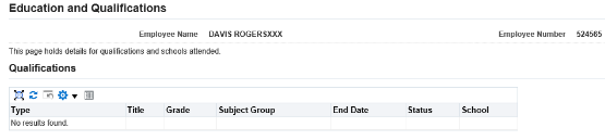 The Education and Qualifications screen will be displayed showing details of your current Qualifications and schools attended: