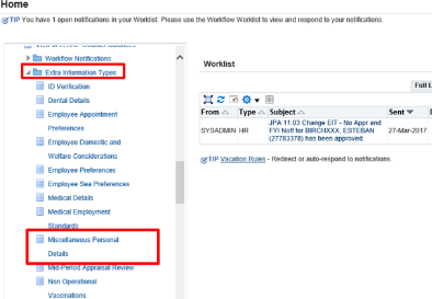 The Miscellaneous Personal Details: Extra Information screen will be displayed.