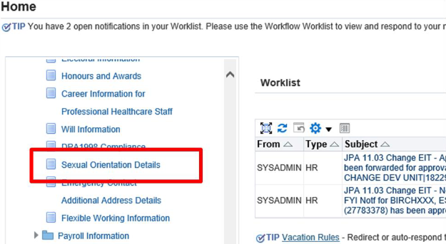 - click on the Sexual Orientation Details link under the Extra Information Types section