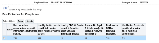 You are required to indicate your consent or non-consent for the MOD to disclose your contact details data to 3rd parties or use of your contact details data for internal marketing purposes. If you are unable to access JPA, contact your Unit HR Admin.
